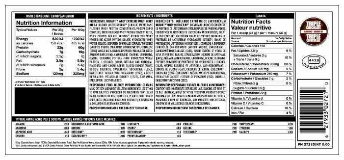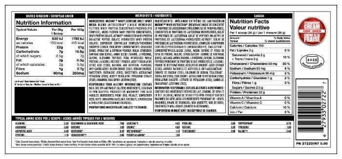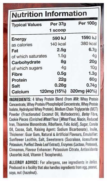 - 22 г белка на 35 г порции — показатель ниже, чем у конкурентов (например, Optimum Nutrition — 24 г).