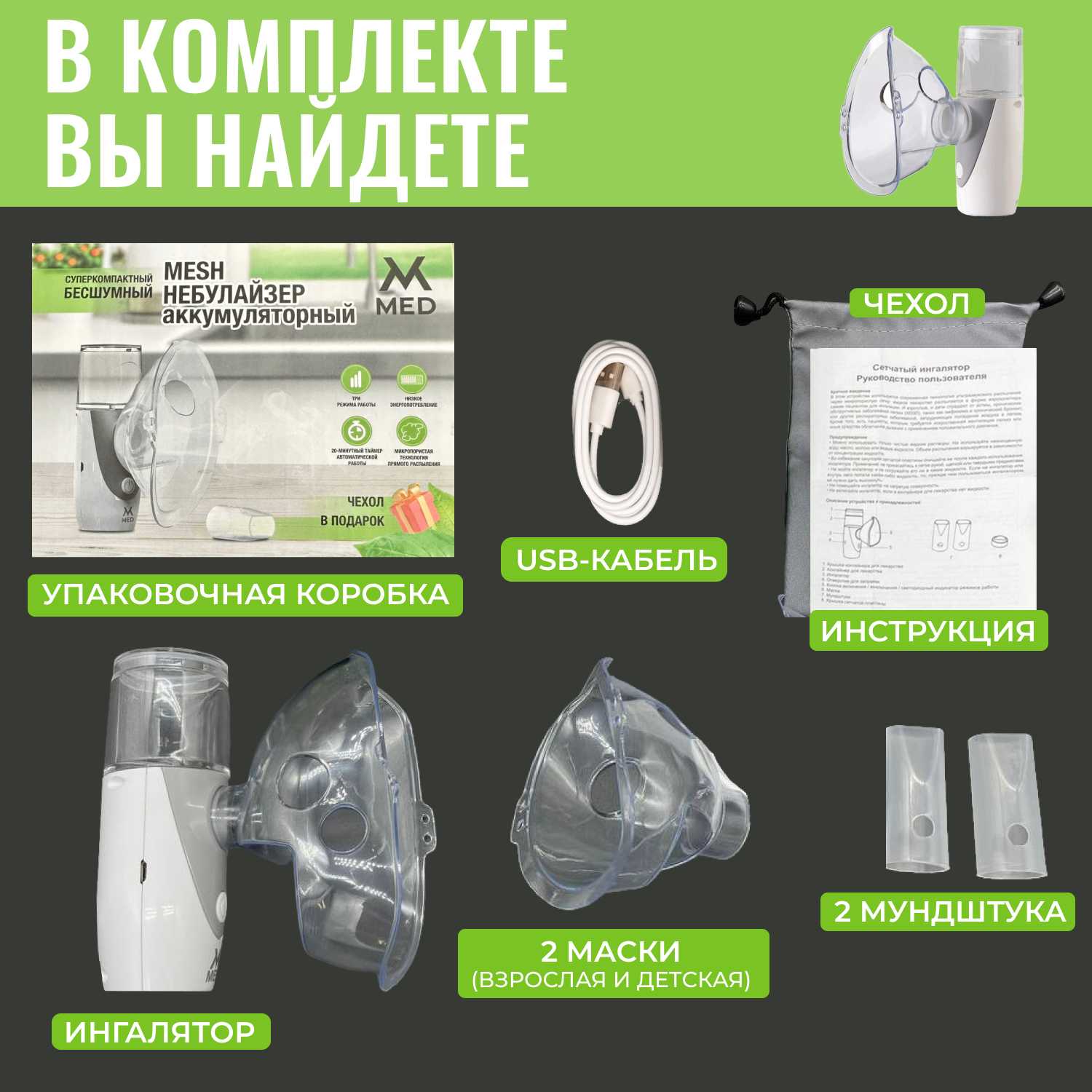 | Тип : | меш-ингалятор (небулайзер) |