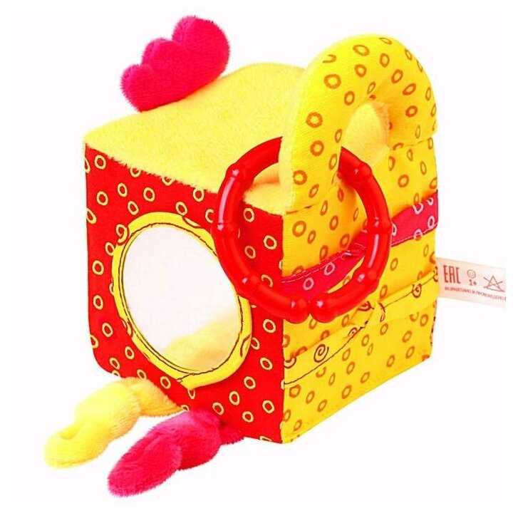 - + Яркая. Привлекает внимание малыша. Шуршит и пищит.