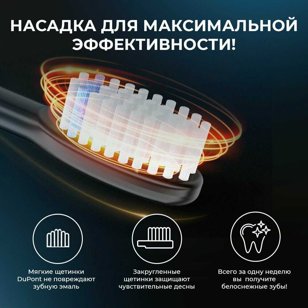 - Звуковой индикатор смены зон чистки предотвращает пропуск участков и обеспечивает равномерную обработку всех сегментов зубного ряда.