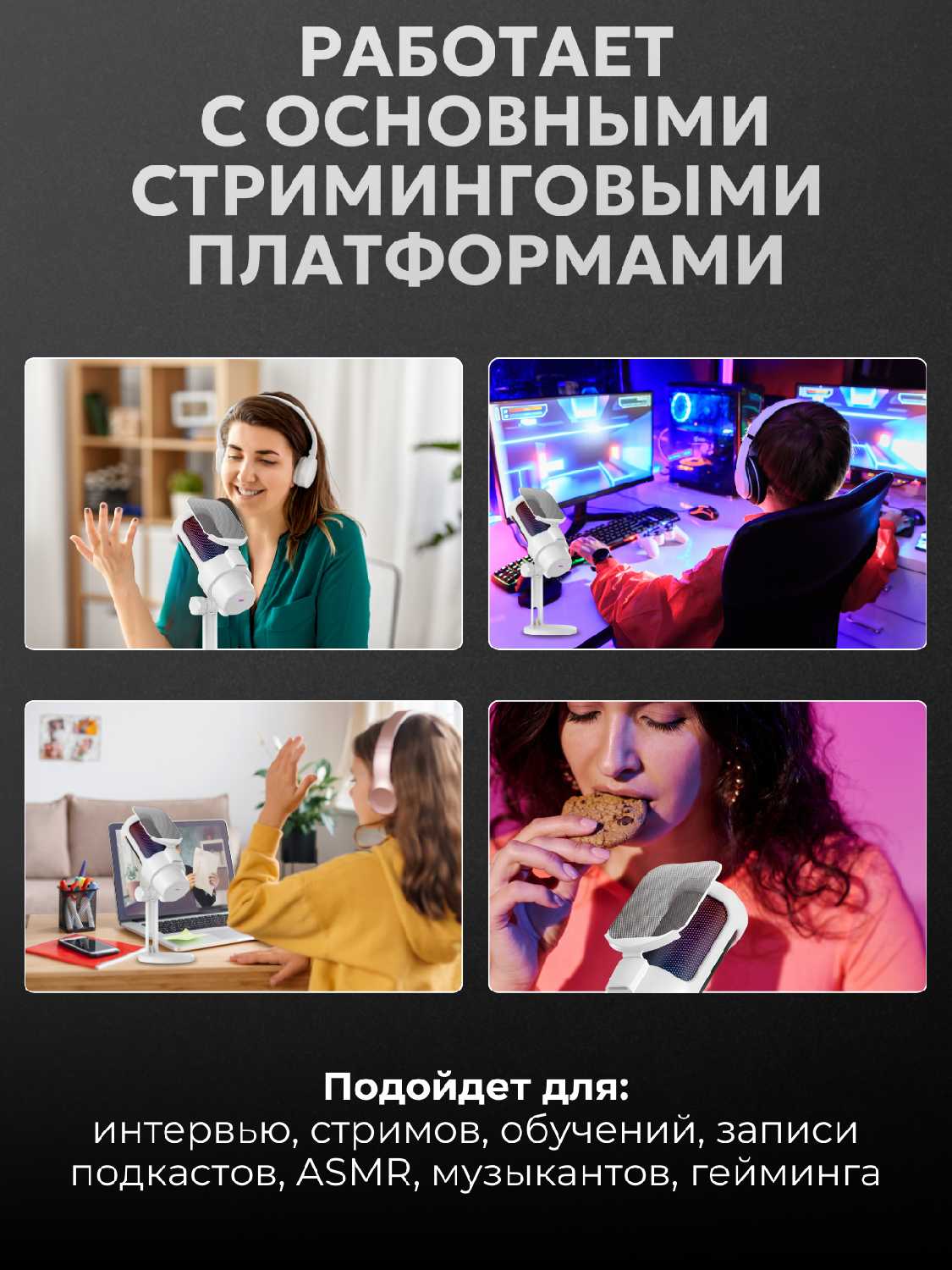микрофон понравился. купила сыну вести стримы, ему зашло, удобный, звук чистый