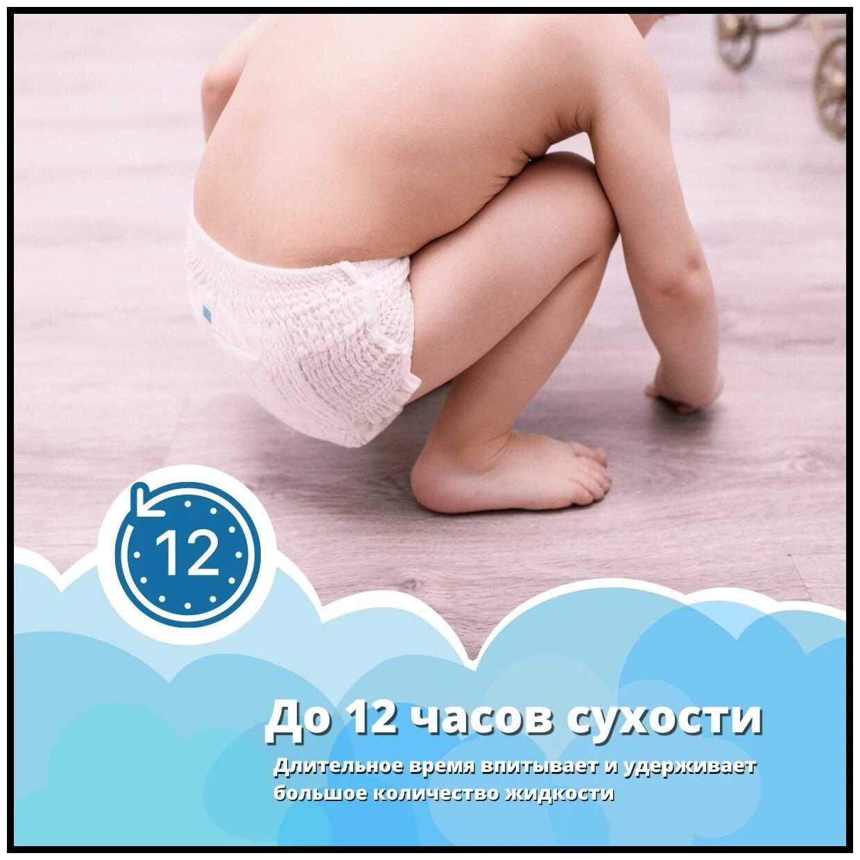 - + Качественные подгузники. Используем больше 4 месяцев при нормальной норме водопотребления ребенком, на ночь хватает трусиков. Возраст ребенка 2,5 годика