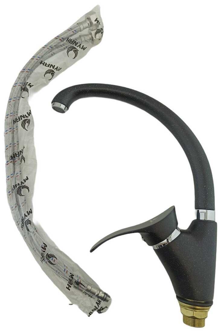 Отзывы о Смеситель для кухни MYNAH поворотный излив цвет черный высота 30 см