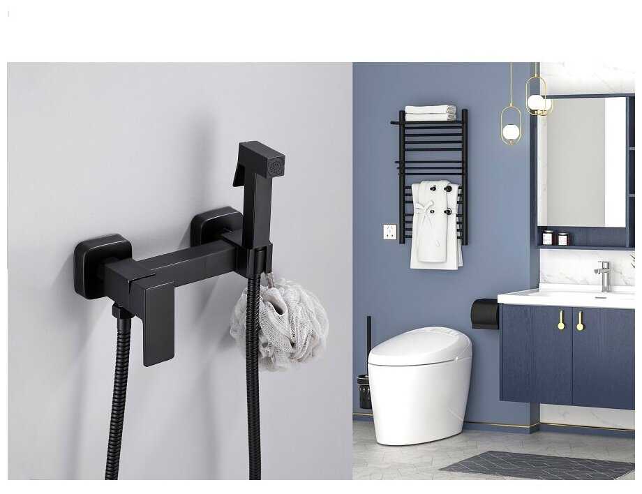 Отзывы о Смеситель для биде с гигиеническим душем MYNAH выполнен из латуни, цвет матовый черный . Длина шланга 100 см.
