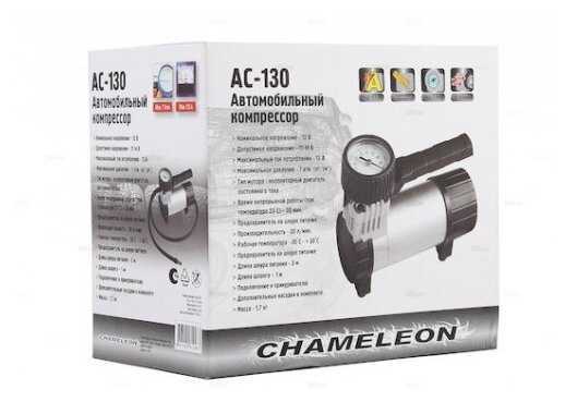 | Подробная комплектация : | 1. CHAMELEON AC-130 – поршневой компрессор высокого давления 2. Универсальные переходники – насадки 3шт 3. Сумка для хранения и переноски 4. Руководство по эксплуатации 5. Упаковочная коробка |
