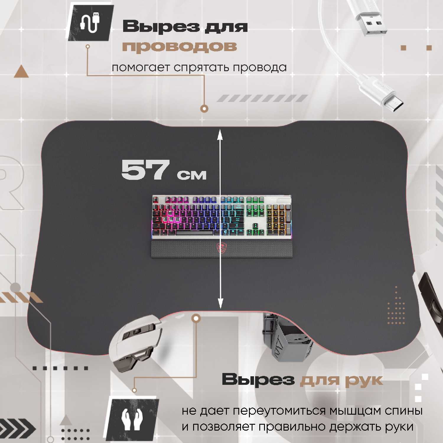 В столе предусмотрена центральная выемка для проводов, однако некоторые пользователи отмечают ее чрезмерную глубину. Дополнительных вырезов для кабельного менеджмента не предусмотрено, что может создать неудобства при подключении нескольких устройств. Организация проводов требует дополнительных решений для поддержания эстетичного вида. -
