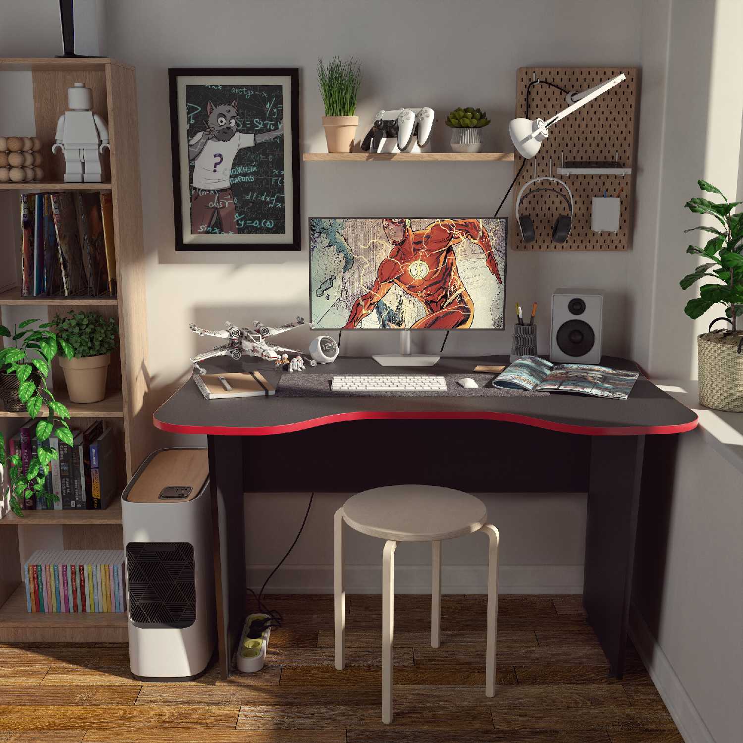 - Габариты позволяют разместить 27-дюймовый монитор и базовую периферию (мышь, клавиатуру, наушники), оптимизируя рабочую зону для экономии места в комнате.