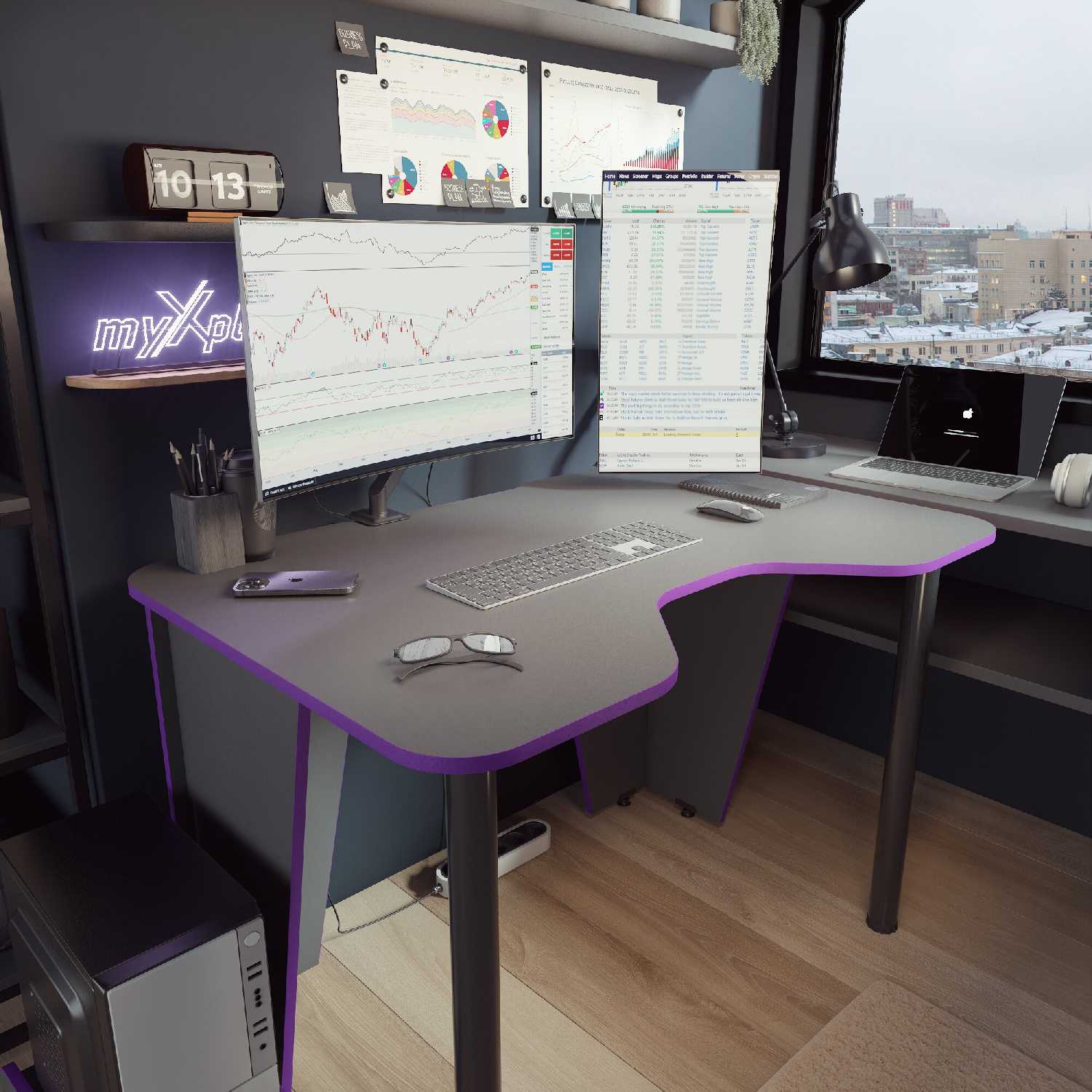 - Длина 110 см позволяет разместить два 24-дюймовых монитора с угловой расстановкой.