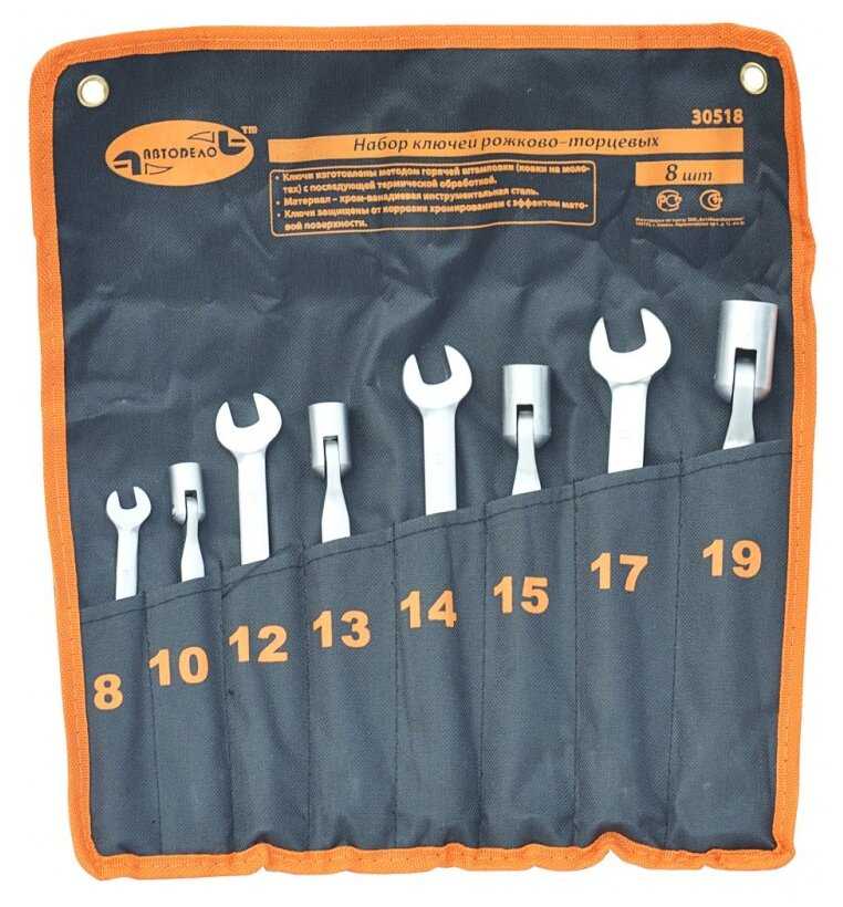 АвтоDело Набор ключей комбинированных 8 штук (6-19 мм)