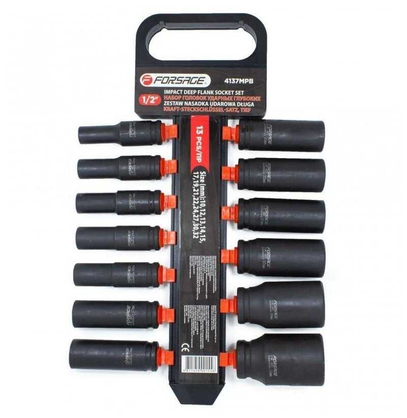 Forsage Набор головок ударных глубоких13пр1/2(10, 12-15, 17, 19, 21, 22, 24, 27, 30, 32мм), на пластиковом держателе 50480 F-4137MPB