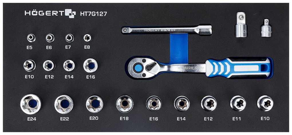 Högert Technik HOEGERT Набор инструментов с трещоткой 3/8", 22 шт., ложемент EVA