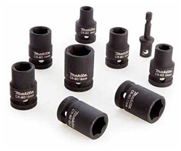 Makita Набор ударных торцовых головок 1/2" 9 шт с адаптером 1/4" (B-54645)