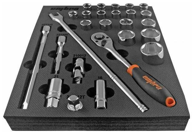 ombra OMT26STE Набор головок торцевых 1/2" DR с аксессуарами в EVA ложементе 280х375 мм, 26 предметов