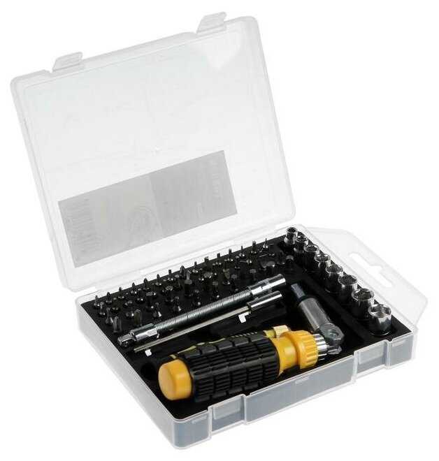 3.4/10 балловTUNDRA Отвертки с набором бит и торцевых головок CONSTRUCTIONE, в пластиковом кейсе, 62 предмета