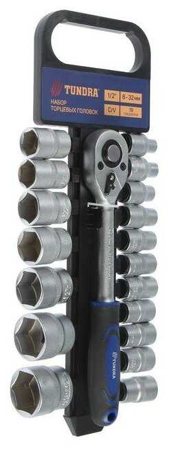 TUNDRA Набор торцевых головок CONSTRUCTIONE, трещотка, CrV, 1/2", 8 - 32 мм, 19 предметов