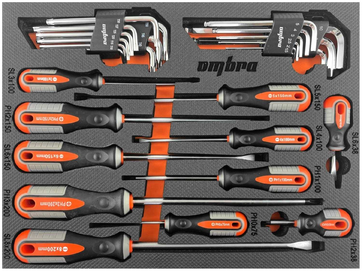ombra Набор отверток стержневых ROUND GRIP и торцевых ключей в EVA ложементе 280х375 мм, 29 предметов Ombra