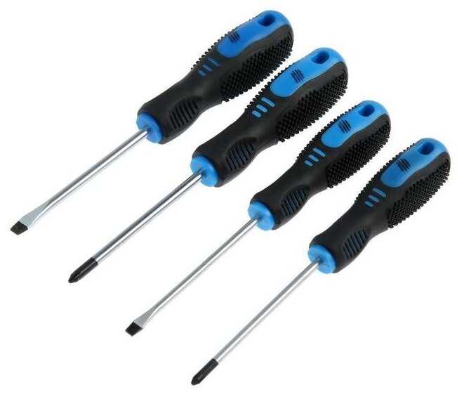 TUNDRA Набор отверток CONSTRUCTIONE, CrV, хром, магнит, 2К рукоятки, PH1, PH2, SL5, SL6 х 100 мм, 4 шт.