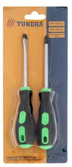 TUNDRA CrV, хром, магнит, двухкомпонентные рукоятки, PH2 и SL6х100 мм, 2 шт.