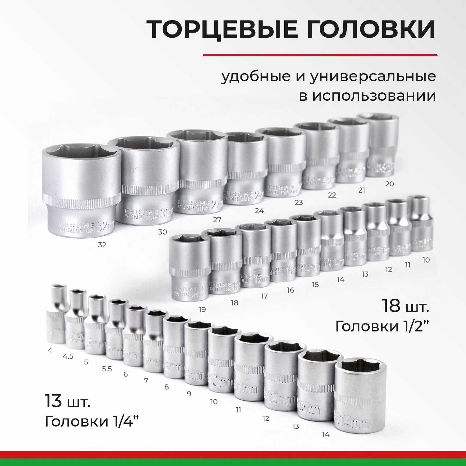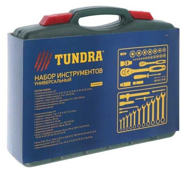TUNDRA Набор инструментов в кейсе CONSTRUCTIONE, автомобильный, CrV, 1/2" и 1/4", 78 предметов