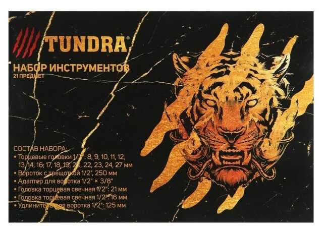 TUNDRA Набор инструментов в кейсе CONSTRUCTIONE, подарочная упаковка "Тигр", CrV, 1/2", 21 предмет