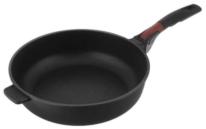 Отличная глубокая сковорода, благодаря съемной ручке иногда использую в духовке, и хранить гораздо удобнее. Готовлю практически без масла, ничего не пригорает, при этом прогревается равномерно. Использую ее чаще всего, очень рекомендую.