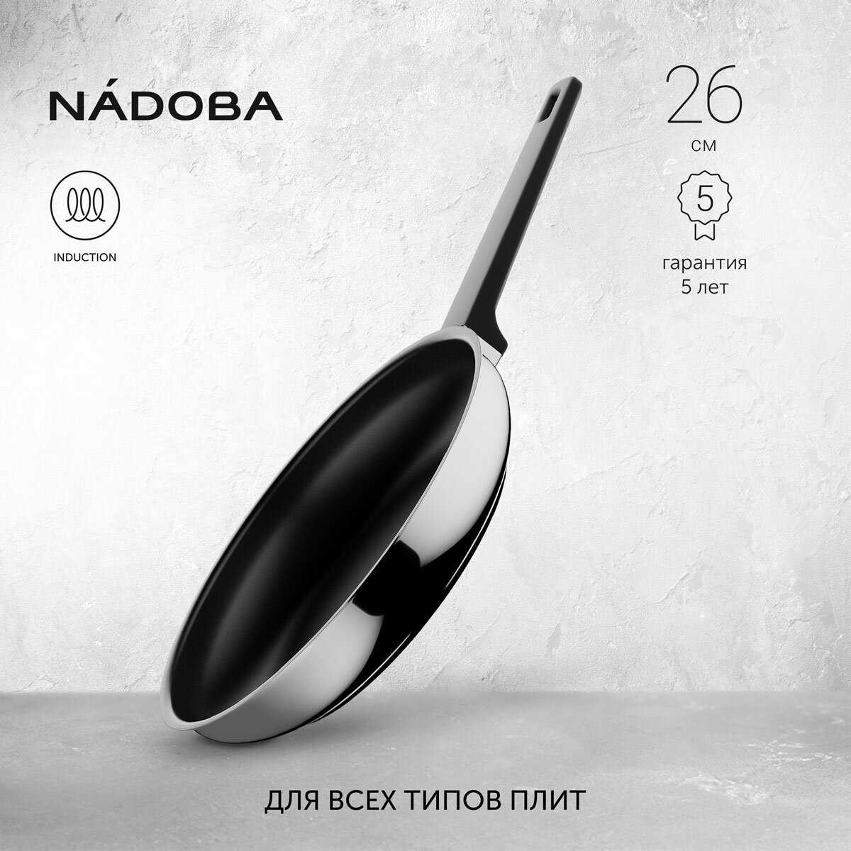 Комплектация : | Сковорода с антипригарным покрытием, 26 см, NADOBA, серия ANDREA 1 шт |