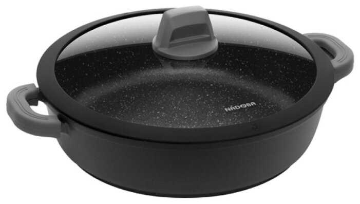 - + Толстое дно и стенки. Покрытие отличное, легко готовить и мыть. Съемные накладки на ручки, подходит для духовки.