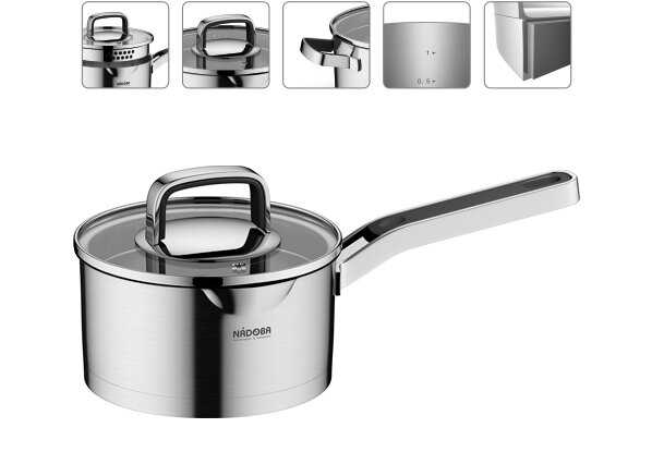 | Дополнительная информация : | капсульное дно, подходит для всех типов плит, включая индукционные, зеркальная полировка, точечная сварка, ручки с силиконовым покрытием, не нагреваются, шкала литража на внутренней поверхности |