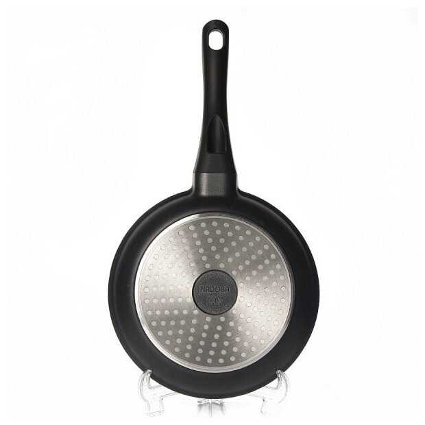 - + Сковорода достаточно тяжёленькая, очень хорошо распределяет тепло. Диаметр сковороды меньше, чем мой индукционный диск у плиты, но все равно плита видит сковородку для меня это было очень важно. Кстати, не смотря на то, что сковороду можно помыть в посудомоечной машине, я стараюсь мыть руками. Отмывается очень легко и быстро, а прослужит намного дольше.