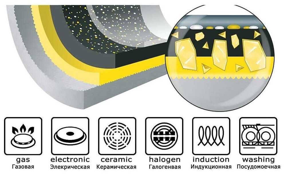 - + Приятная сковорода, дизайн прост, но по своему уникален, никаких острых углов в районе ручки! Из экономии , внутри покрытие напыление керамическое, снаружи антипригарное черное! Эргономика супер!