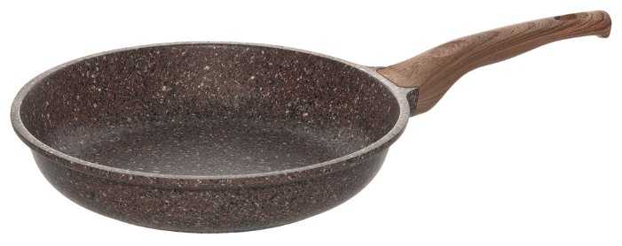 - + Большая удобная сковорода с хорошей бакелитовой ручкой. Ручка удобная, надежно закреплена на сковороде, а еще вообще не нагревается даже если что-то долго томить или жарить. Сковородку покупал для индукционной плиты. Когда ставлю ее на конфорку, та сразу распознает наличие посуды. Дно достаточно толстенькое, нагревается равномерно. Стенки удобной высоты чтобы пожарить мясо, потушить овощи или просто сделать блинчиков. Антипригарное покрытие имеет отличное качество, оно прочное и не дает еде прилипать вообще. Масла использую минимально. Сковорода выглядит симпатично, вообще посуда из этой коллекции здорово освежает интерьер кухни, готовить в ней приятно.
