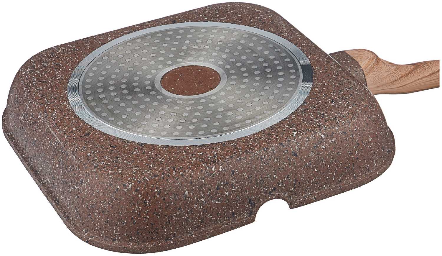 Отличная сковорода, готовлю без масла или с минимальным добавлением, ничего не пригорает. Ручка не скользит и не нагревается. И очень приятный дизайн - добавляет уюта на кухне. Рекомендую к покупке.