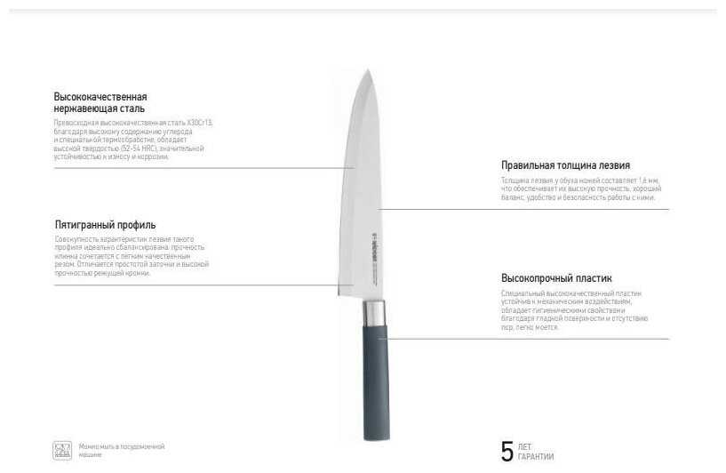 Хорошие ножи, всегда у меня под рукой на кухне, очень острые. Ручка удобная, вообще после покупки этого набора другие ножи вообще не использую, мои главные помощники на кухне!