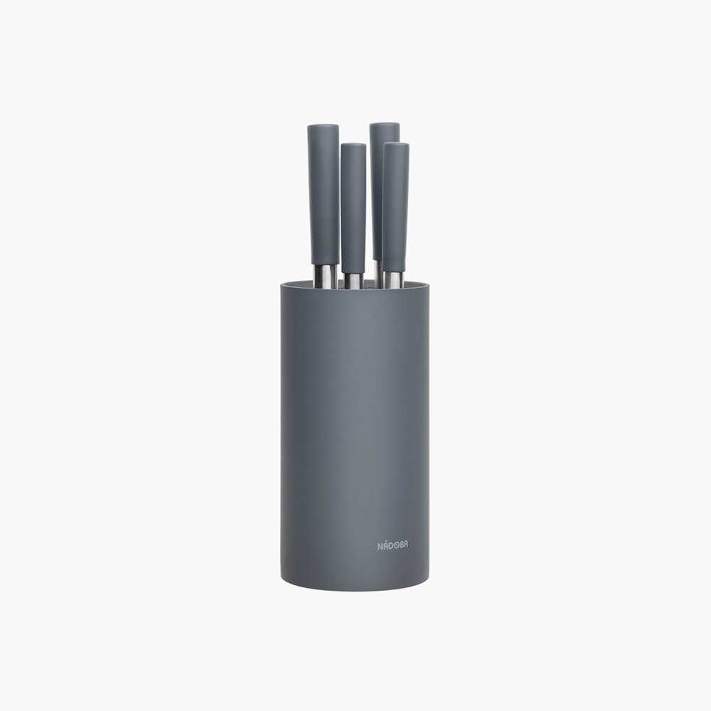 - + Классный набор приятный блок на ощупь все нужные ножи в одном