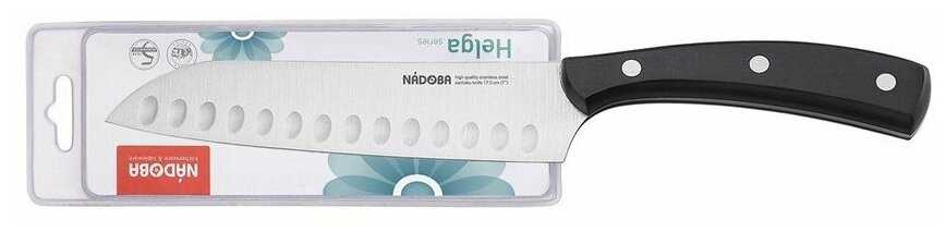 Нож отличный, острый и комфортно лежит в руке, до этого брал сантоку прямой формы, совсем не то, очень неудачный нож. В отличии от него, сантоку NADOBA несравненно удобный нож для приготовления блюд, его изогнутые формы, позволяют , под разными углами нарезать и шинковать продукты. Давно искал сантоку именно такой как NADOBA Helga (17,5 см), не большой и не маленький, то что нужно на кухне, однозначно пять звезд, рекомендую