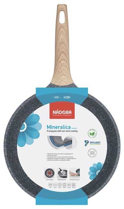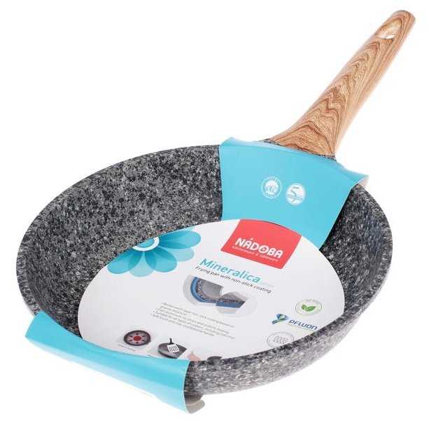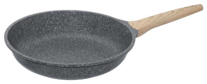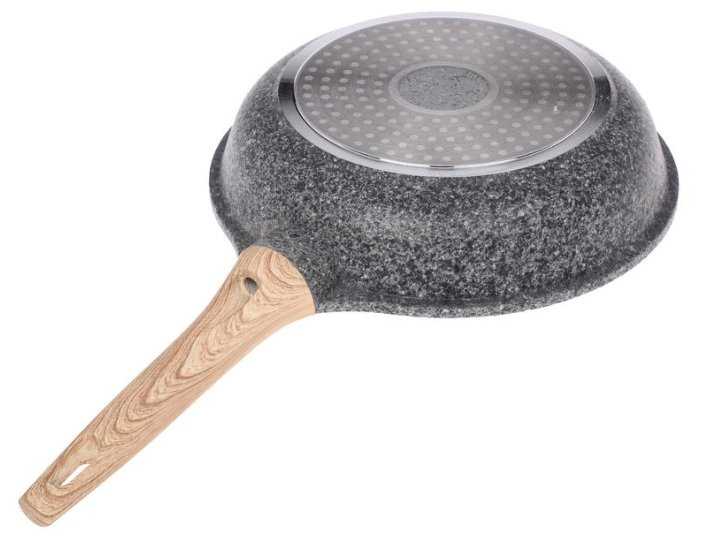 - Ручка из композитного материала с текстурой «под дерево» не нагревается даже при длительной жарке, что подтверждают тесты с кипячением воды (3+ минуты).