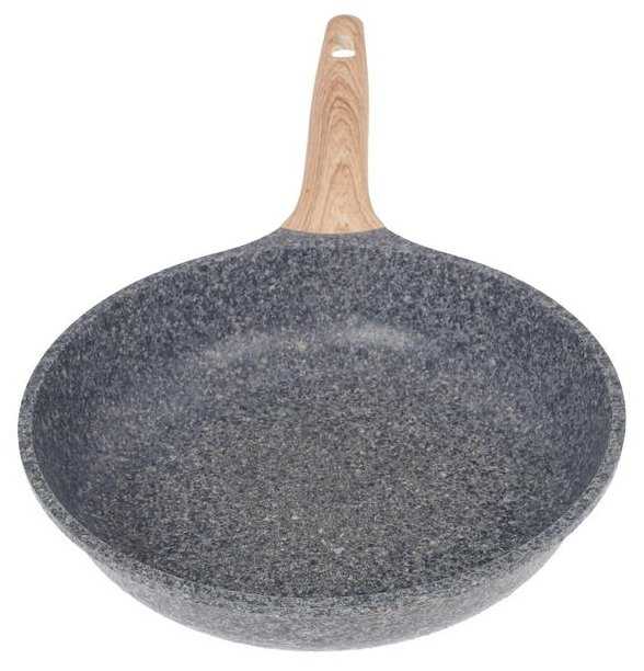 - + Идеальный компактный размер — как раз то, что нужно для быстрого поджаривания яиц, разогрева сосиски или порции овощей. Не занимает места на плите и в шкафу. Смотрится очень стильно — дизайн современный, матовое покрытие «под камень» сразу привлекло внимание. Приятно держать в руках. И главный плюс для меня — можно смело кидать в посудомойку после готовки, не надо возиться с мытьём.