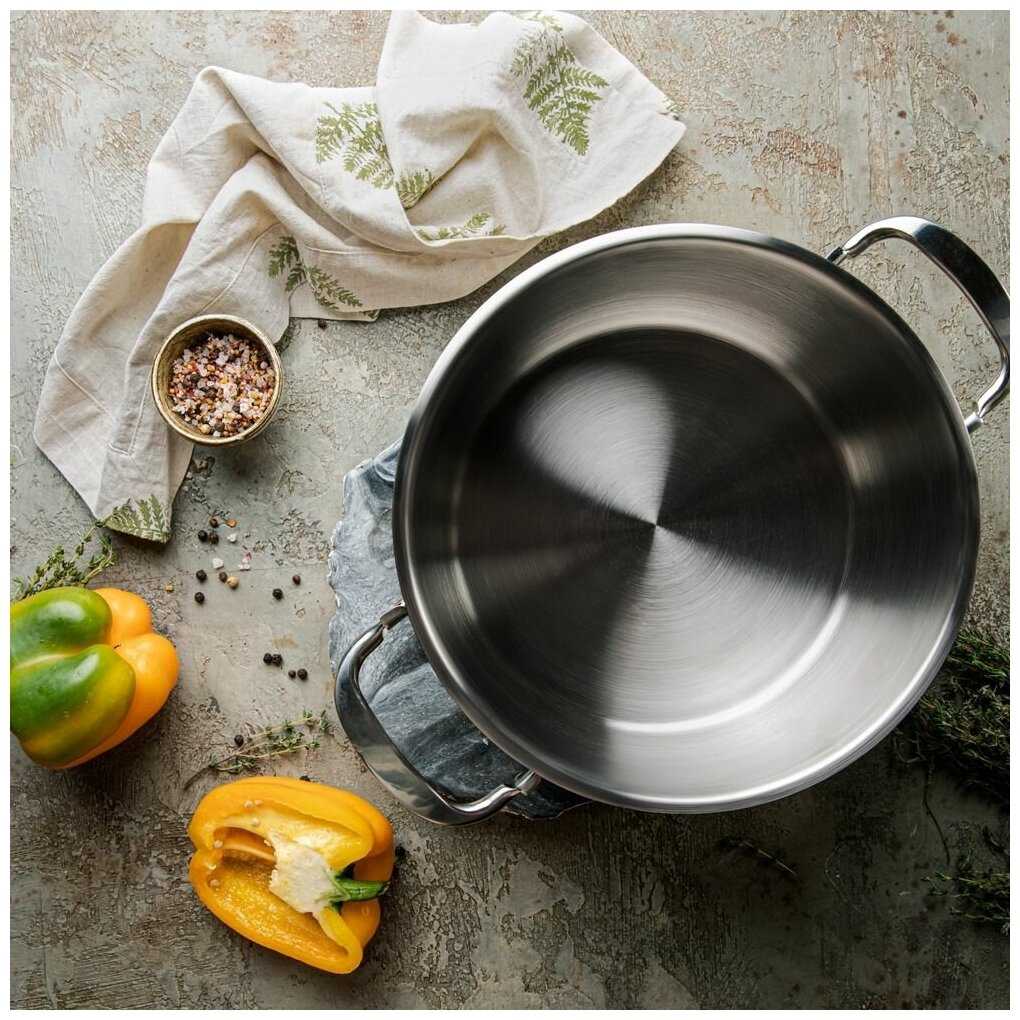 | Дополнительная информация : | Складные ручки, встроенный дуршлаг, смотровое окошко в крышке, вертикальный борт, трехслойное дно. |