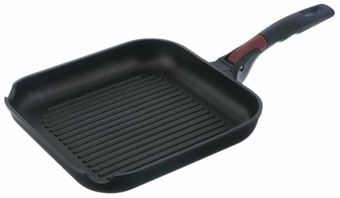- + лёгкая алюминиевая сковорода, съёмная рукоятка, можно мыть в посудомойке.