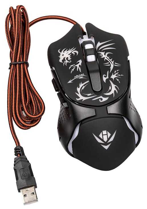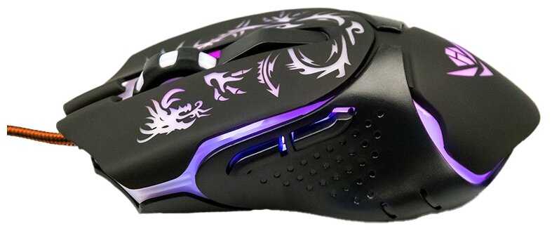 Хорошая игровая мышка, кнопки не заедают, колёсико работает. Дизайн интересный - светящийся дракон посередине кнопок. Мышка удобно лежит в руке, не маленькая. Цена с бонусами была 333 рубля. Цвета меняются сами по себе, нельзя настроить какой-то один цвет ( в принципе, это и не нужно). Шнур в тканевой оплётке - дольше прослужит. Вообще такие мышки покупаем не первый раз, года на 2 должно хватить (кстати, на мышке указан срок службы - 2 года). Рекомендую к покупке.