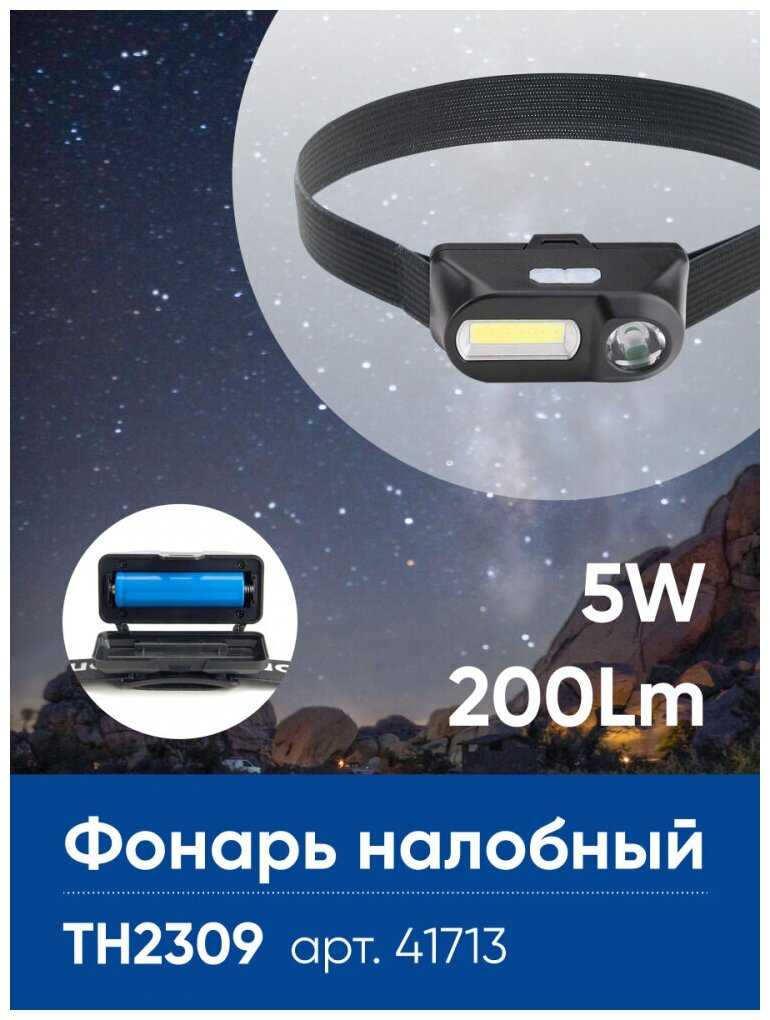 Feron TH2309 с аккумулятором USB 1*18650, 3W+2W XPE+COB IP44, пластик