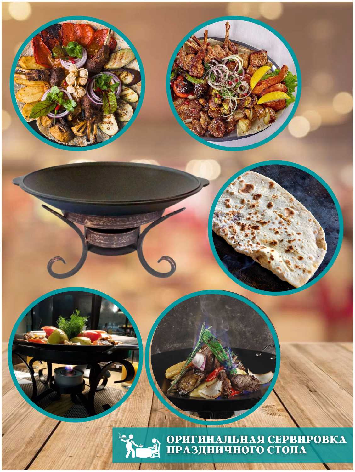 - Конструкция с углублением для углей обеспечивает поддержание оптимальной температуры блюда во время подачи.