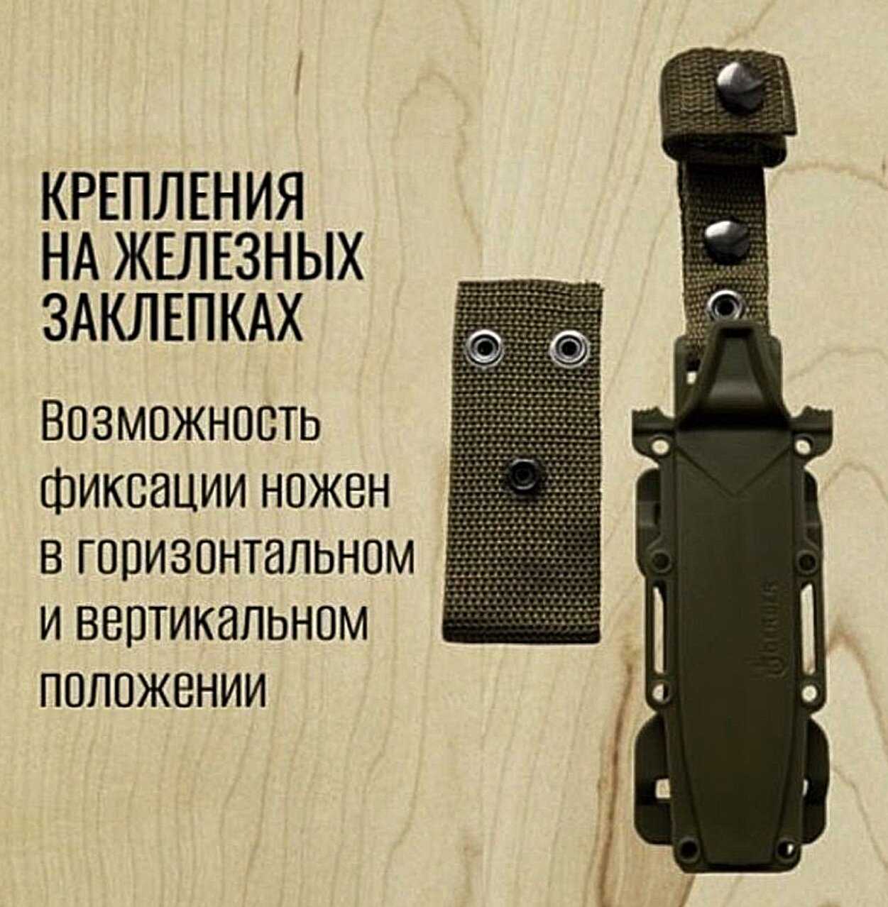 - + отличный, красивый нож, с нормальными ножнами из пластика, множество вариантов крепления, хоть на пояс, хоть на лямку рюкзака. Лезвие с защитным покрытием, отлично заточён.