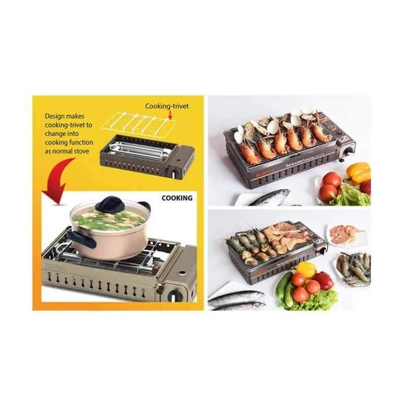 Как мобильный газовый гриль вещь достаточно, добротная, на 900 гр мяса ушло, примерно 122 г газа, это при комнатной температуре без ветра. На природе хорошо иметь бытовой баллон. К покупке скорее рекомендую, чем нет, тем более что в основной массе мобильные грили от 25тр. Этого гриля вполне достаточно для двоих на один прием пищи, ну если компания человек 6-7 то в несколько партий можно приготовить при наличии большого баллона газа, перходник в комплекте. И не забывайте наливать воду в поддон.