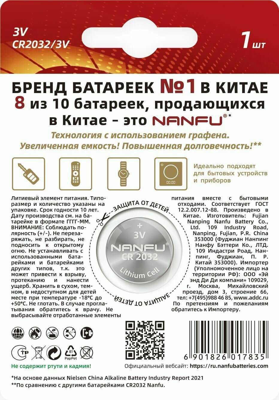 Отзывы о Батарейка NANFU литиевая с графеном (2032)
