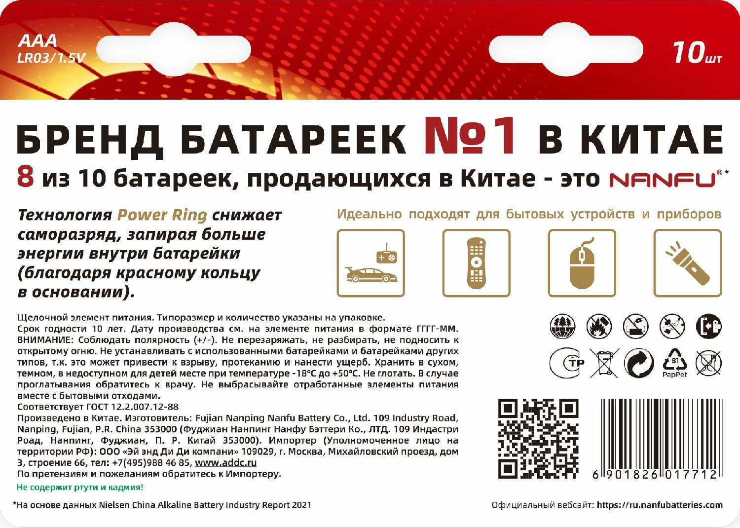 Характеристи NANFU Батарейка мизинчиковая (LR03)