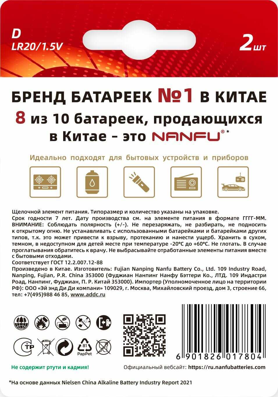 Лучшие цены сегодня на NANFU Nanfu С (LR14 2B)