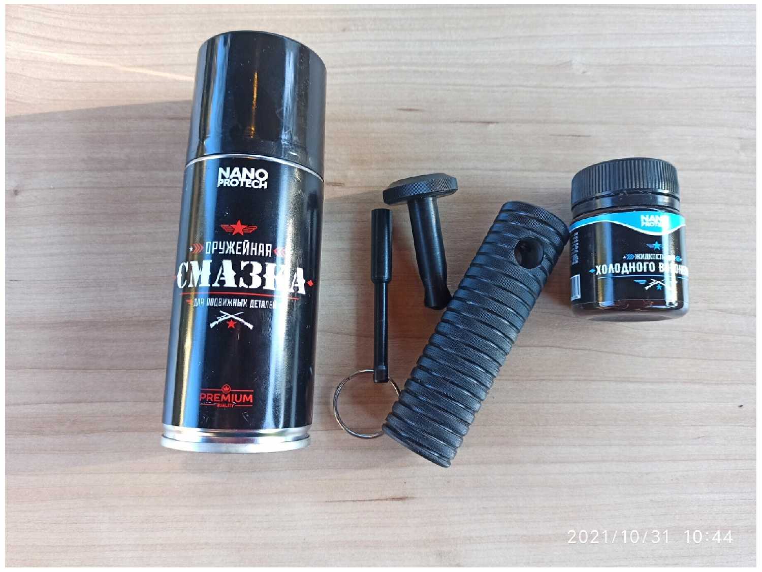 Способ применения : | Перед применением хорошо взболтать. Повреждённое место отшлифовать наждачной бумагой зернистостью 1000 или абразивной подушкой, тщательно очистить и обезжирить при помощи обезжиривателя NANOPROTECH. Используя тонкую кисточку или ватную палочку, нанести жидкость тонким слоем и дать высохнуть 5-10 мин. Обработанное место промыть водой, высушить. Повторить несколько раз до достижения желаемой степени чернения. Покрыть оружейным маслом NANOPROTECH и отполировать. |