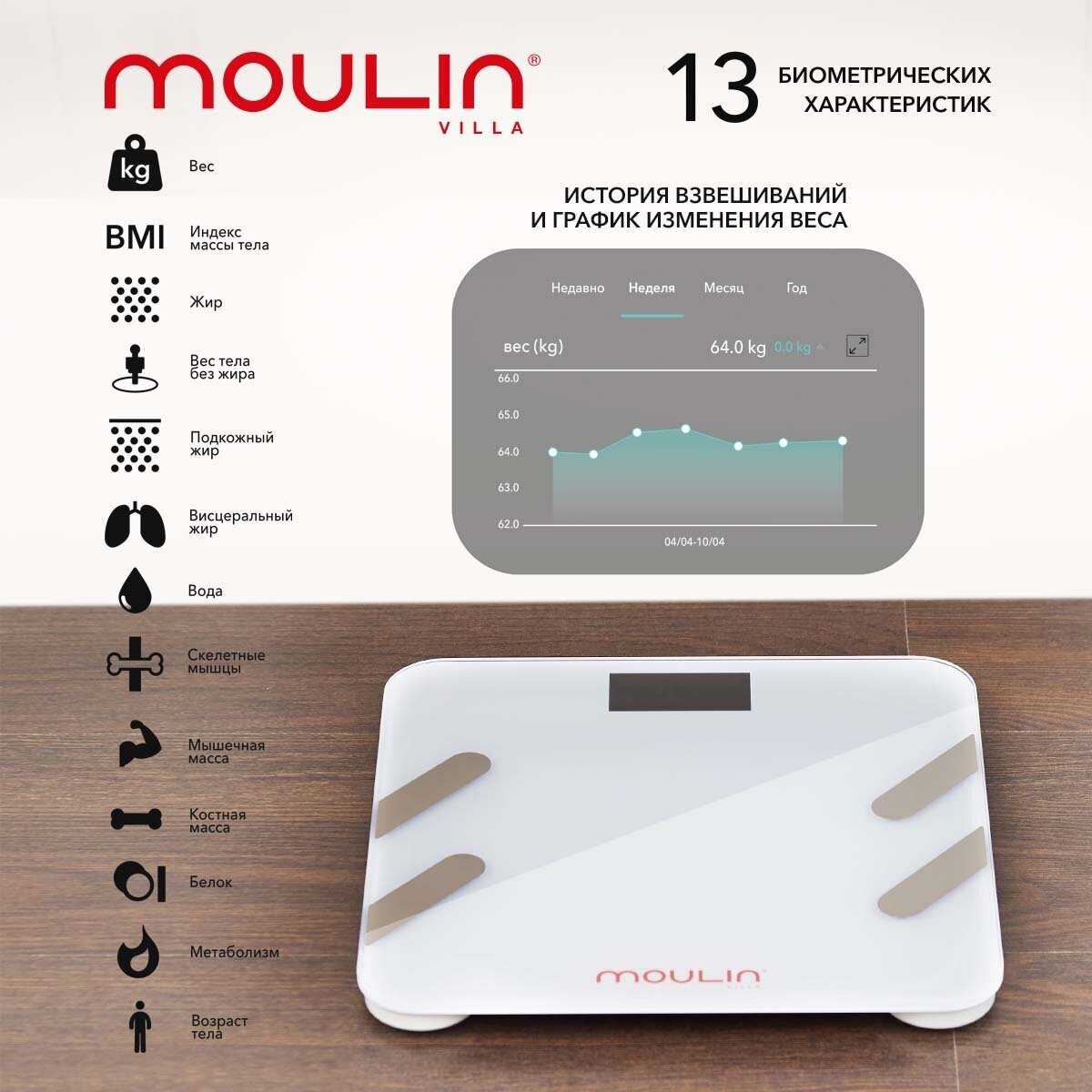 MOULINvilla SD- SC 003 W mini / весы напольные электронные / умные весы / диагностические весы / весы напольные мини, белый