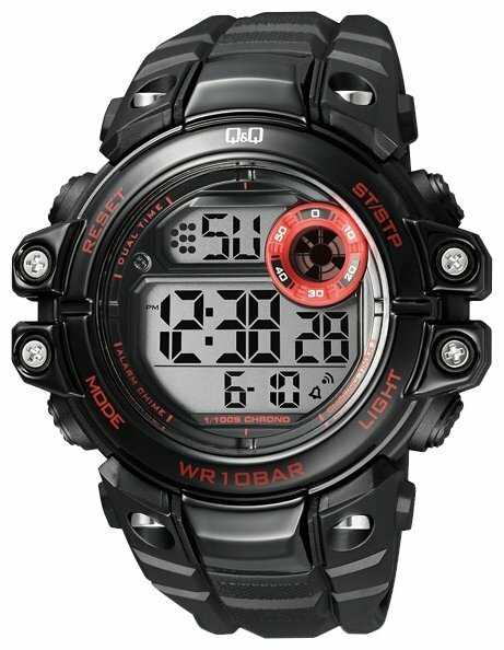 Q&Q кварцевые, корпус пластик, будильник, секундомер, хронограф, таймер обратного отсчета, водонепроницаемые, подсветка дисплея